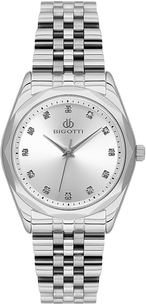 Стильные и элегантные женские часы Bigotti. Циферблат украшен кристаллами. Браслет с раскладывающейся застежкой. Гарантия 1 год.