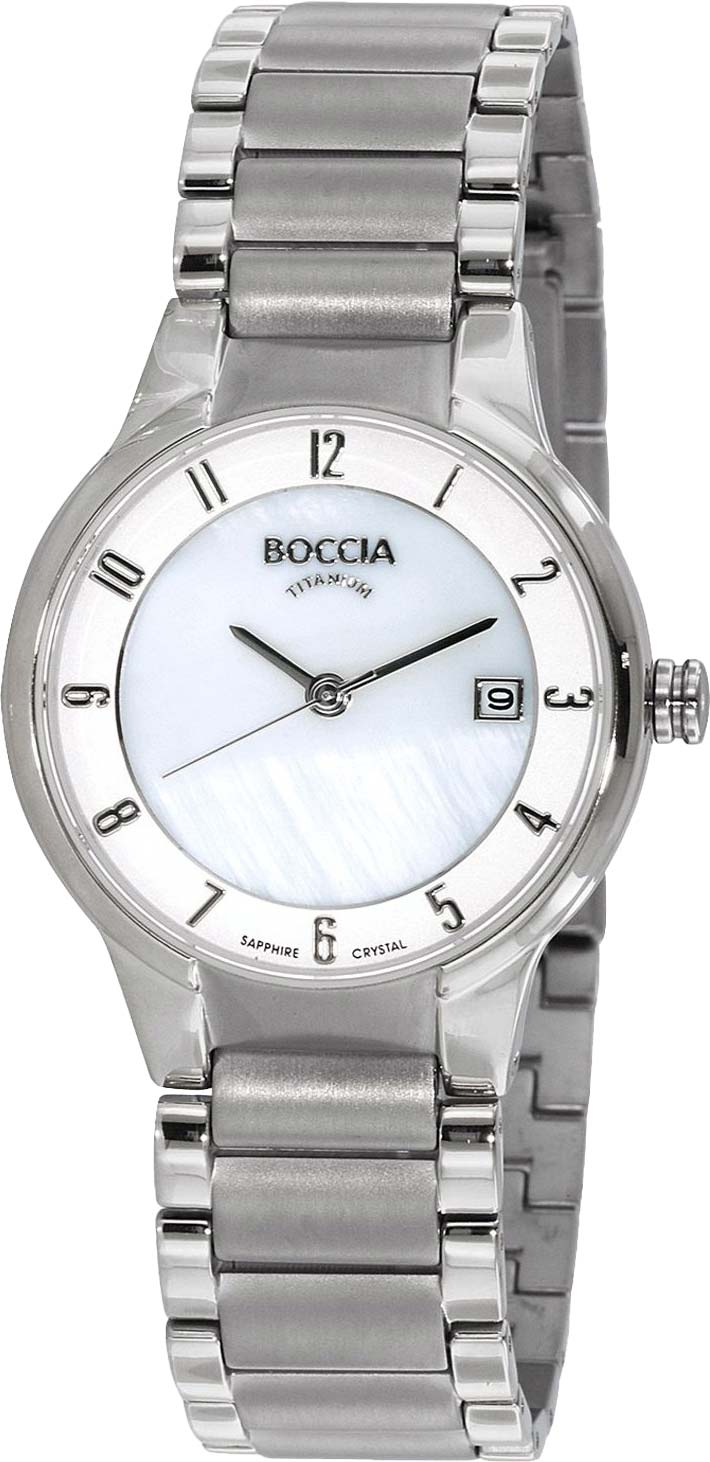 Стильные женские часы с круглым корпусом на удобном титановом браслете. Присутствует окошко даты. Браслет с раскладывающейся застежкой. Гарантия 2 года.