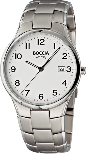Мужские часы Boccia в титановом круглом корпусе. Браслет с раскладывающейся застежкой. Гарантия 2 года.