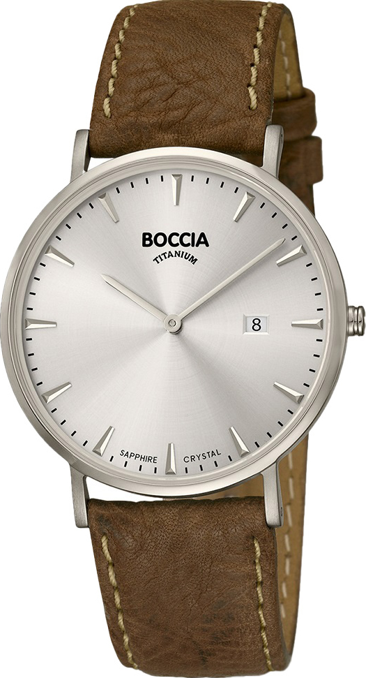 Титановые наручные часы Boccia Titanium. Присутствует окошко даты. Ремешок с классической застежкой. Гарантия 2 года.