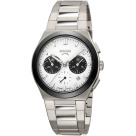 Мужские наручные часы-хронограф с секундомером. Дополнительно на малом циферблате отображается текущее время в 24-х часовом формате. Присутствует окошко даты. Керамический безель. Браслет с раскладывающейся застежкой. Гарантия 2 года.