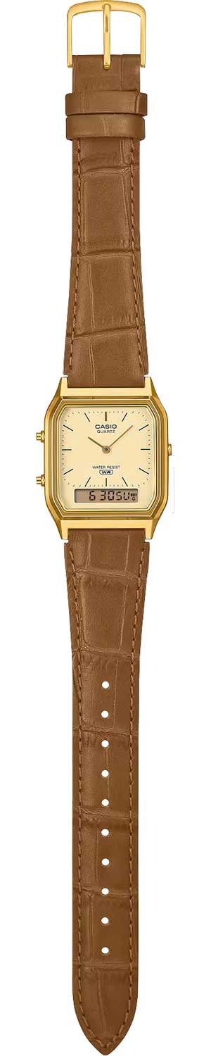 Мужские и женские часы Casio в ретро-стиле (артикул AQ-230EGL-9A) сочетают классический дизайн с современными функциями. Модель оснащена удобной опцией двойного часового пояса для отслеживания времени в разных регионах, переключением между 12- и 24-часовым форматом, а также профессиональным хронографом с функцией SPLIT для измерения параллельных событий. Точность обеспечивает кварцевый механизм с батареей на 3 года, а читаемость – лаконичный циферблат со штриховыми метками. Универсальный образ завершает кожаный ремешок с классической застёжкой. Гарантия 1 год.