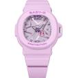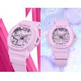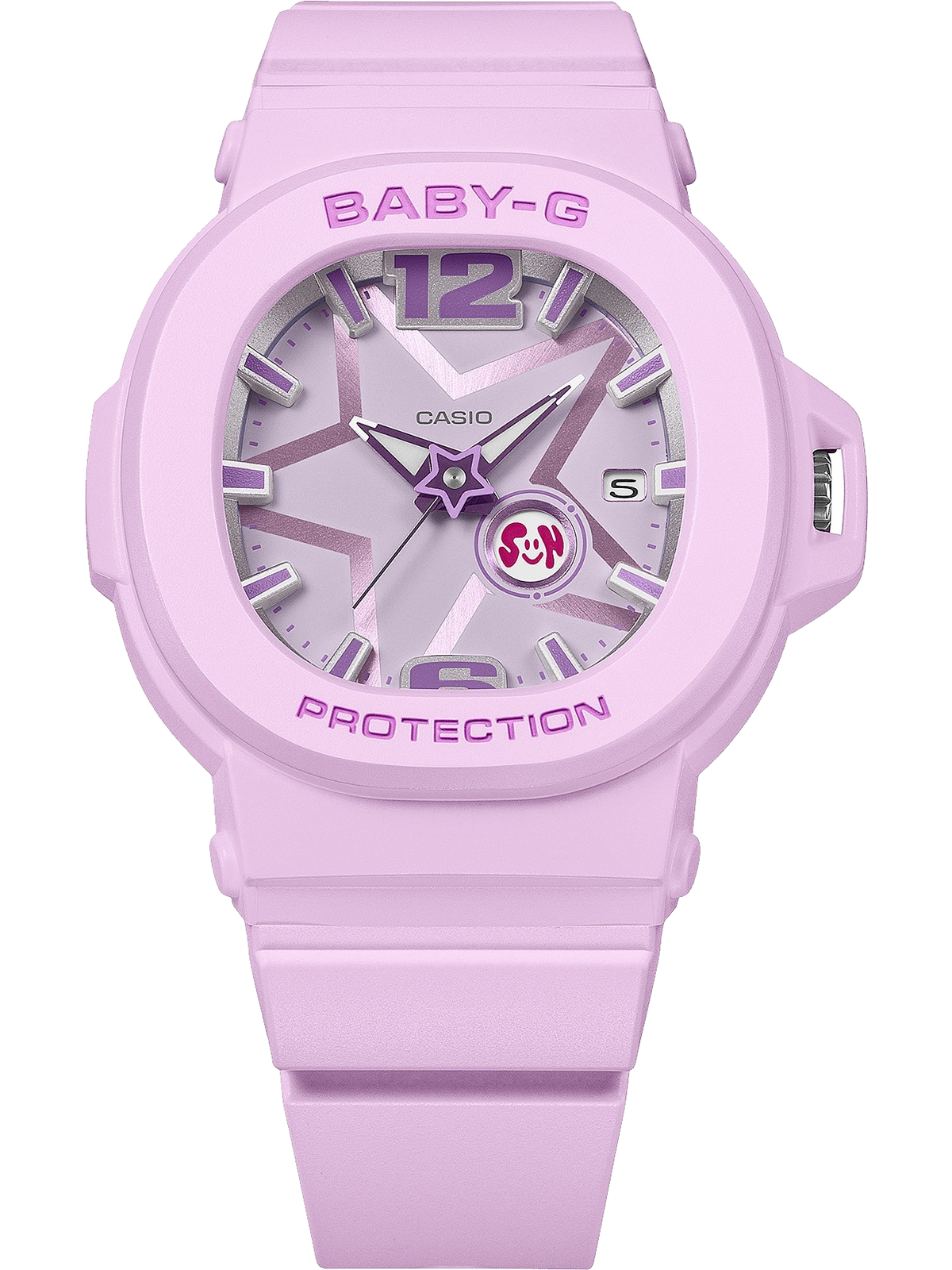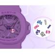 Casio Baby-G BGA-10D-6A - это стильные наручные часы, которые воплощают в себе футуристичный дизайн в космическом стиле Y3K с мерцающими элементами, создающими неповторимую атмосферу будущего. Модель привлекает внимание оригинальным оформлением с космическим циферблатом, украшенным звездными мотивами, где выпуклые индексы и основание стрелок выполнены в металлических тонах, что придает изделию особую изысканность. Корпус и ремешок часов изготовлены из прочного полимерного пластика, обеспечивающего легкость и долговечность конструкции.<br>