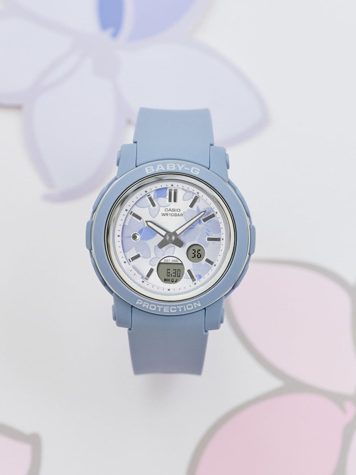 Спортивные женские часы Casio Baby-G. Милые Baby-G для вашей активной жизни. BGA-290 имеют круглый корпус и широкий, легко читаемый циферблат, имеющий элегантный цветочный узор, придающий запястью нотку гламура. Кристалл в центре цветка на отметке 9 часов добавляет блеска. 12-ти и 24-х часовой формат отображения времени. Секундомер с шагом 1/100 сек. и временем измерения 1 час. Таймер обратного отсчета от 1 минуты до 24 часов. Мировое время 31 часовой пояс (48 городов + всемирное координированное время), отображение кода города, отображение названия города, включение/выключение перехода на летнее время, автоматическое переключение на летнее время (DST). 5 ежедневных будильников, ежечасный сигнал. Светодиодная подсветка, выбираемая продолжительность подсветки (1,5 или 3 секунды), послесвечение). Питание от батарейки CR1025, примерный срок работы 3 года. Задняя крышка из нержавеющей стали с креплением к корпусу на винтах. Ремешок с классической застежкой, обхват запястья 125-180 мм. Вес часов 33 грамма. Гарантия 1 год.