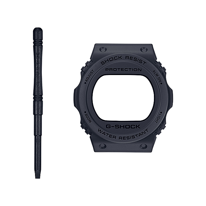 Лимитированная модель G-SHOCK в корпусе DWE-5600, выпущенная в честь 40-летия бренда G-Shock. Модель выполнена в черном матовом корпусе с инверсионным циферблатом и в комплекте имеет дополнительный сменяемый корпус DW-5700. Корпус и ремешок выполнены из биопластика, который изготавливается из возобновляемых органических ресурсов. Одна из боковых кнопок украшена выгравированной звездой. Противоударный корпус защищает механизм от ударов и вибрации. Циферблат подсвечивается ярким светодиодом. Послесвечение. Цвет подсветки: белый. Световая индикация сигнала. Типы сигналов: ежедневный, ежемесячный, каждый день определенного месяца, на определенную дату. 12-ти и 24-х часовой формат времени. Секундомер с двумя точностями показаний: 1/100с (до 1ч) и 1с (после 1ч) и временем измерения 24ч. SPLIT-хронограф. Таймер обратного отсчета от 1с до 24ч с автоповтором. Батарейка рассчитана на 5 лет. Стальная задняя крышка крепится на 4-х винтах. Задняя крышка крепится на 4-х винтах и украшена логотипом, созданным граффити-художником Эриком Хейзом в ознаменование 40-летия G-SHOCK. Водонепроницаемость в соответствии с ISO 2281. На ремешке путем горячей штамповки нанесены года и модели, начиная с самых первых G-SHOCK выпущенных в 1983 году. Классическая застежка и система быстрой замены ремешка. Вес 58 грамм. Гарантия 1 год.