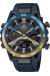 Стильные и функциональные мужские часы Casio Edifie в усиленном карбоном корпусе с черным циферблатом и яркими бирюзовыми деталями. Питание от солнечной энергии Tough Solar - солнечные батарейки большой мощности, индикатор заряда батареи. Функция автоматического сохранения энергии. Время работы аккумулятора без подзарядки приблизительно 7 месяцев, при включенной функции сохранения энергии приблизительно 18 месяцев. Двойная светодиодная подсветка Super Illuminator с функцией Afterglow (для подсветки не нужно удерживать кнопку, время послесвечения настраивается 1,5 или 3 сек): одновременно подсвечивается аналоговый циферблат и цифровой дисплей. При наклоне часов в сторону лица для считывания, функция автоподсветки обеспечивает автоматическое включение светодиодной подсветки. Цвет подсветки: белый. Необритовое светонакопительное покрытие обеспечивает длительное послесвечение в темноте даже после кратковременного нахождения на свету. 12-ти и 24-х часовой формат времени. Секундомер с двумя точностями показаний: 1/100с (до 1ч) и 1с (после 1ч) и временем измерения 24ч. SPLIT-хронограф. Таймер обратного отсчета от 1с до 24ч. Мировое время – 38 городов (38 часовых поясов), всемирное координированное время (UTC). Автоматический переход на зимнее и летнее время, возможность включения/отключения данной функции. Переключение между домашним и мировым временем. Беспроводная технология Bluetooth® со сверхнизким потреблением энергии для синхронизации со смартфоном. При подключении к смартфону часы корректируют текущее время, настраивают будильник, а также копируют настройки мирового времени (до 300 городов). Приложение EDIFICE Connected позволяет вести журнал показаний секундомера и прохождения этапов, вычислять разность между заданным временем и временем этапа. Отображение дней недели на шести языках. Функции перемещения стрелок, поиска телефона и включения/отключения звука. Карбоновый безель. Стальная задняя крышка крепится на 4-х винтах. Водонепроницаемость 10 Бар в соответствии с ISO 2281. Браслет с раскладывающейся тройной застежкой, расстегиваемой одним касанием. Вес часов 125 грамм. Гарантия 1 год.