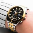 Мужские наручные часы-хронограф Casio Edifice с секундомером. Присутствует окошко даты. Секундомер с точностью 1/10 и временем измерения 1 час. Циферблат закрывает устойчивое к потертостям и царапинам сапфировое стекло. Питание от батарейки SR920SW, рассчитанной на 3 года работы без замены. Завинчивающаяся задняя крышка. Браслет с раскладывающейся застежкой, обхват запястья от 150 до 205 мм. Вес часов 135 грамм. Гарантия 1 год.