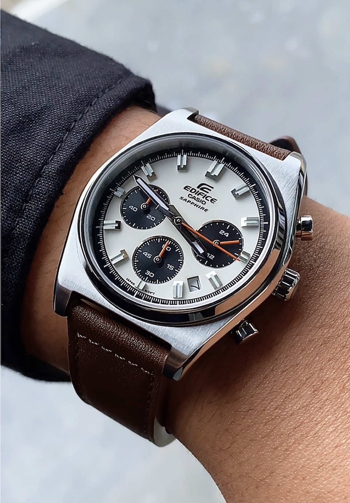 Мужские часы Casio Edifice EFB-730L-7A сочетают функциональность хронографа и элегантный дизайн. Модель оснащена двумя независимыми системами измерения: основная показывает текущее время, дополнительная работает как секундомер с точностью до 1 секунды и возможностью замера интервалов до 1 часа. Переключение между 12-часовым и 24-часовым форматами осуществляется удобной кнопкой, а шкала времени нанесена на циферблат.