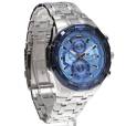 Мужские часы Casio Edifice EFR-539DE-2A сочетают функциональность хронографа со спортивным стилем. Модель оснащена двумя независимыми системами измерения: основным циферблатом и секундомером с точностью 1/10 секунды, позволяющим фиксировать интервалы до 1 часа. Центральная секундная стрелка выполняет роль секундомера. На циферблате со штриховой разметкой расположено окно даты в позиции 3 часа. Конструкция включает защищенную заводную головку и винтовую заднюю крышку для улучшенной водозащиты. Источник питания рассчитан на 2 года работы. Браслет с тройной раскладывающейся застежкой (one-touch) обеспечивает удобную посадку на запястье. Гарантия 1 год.