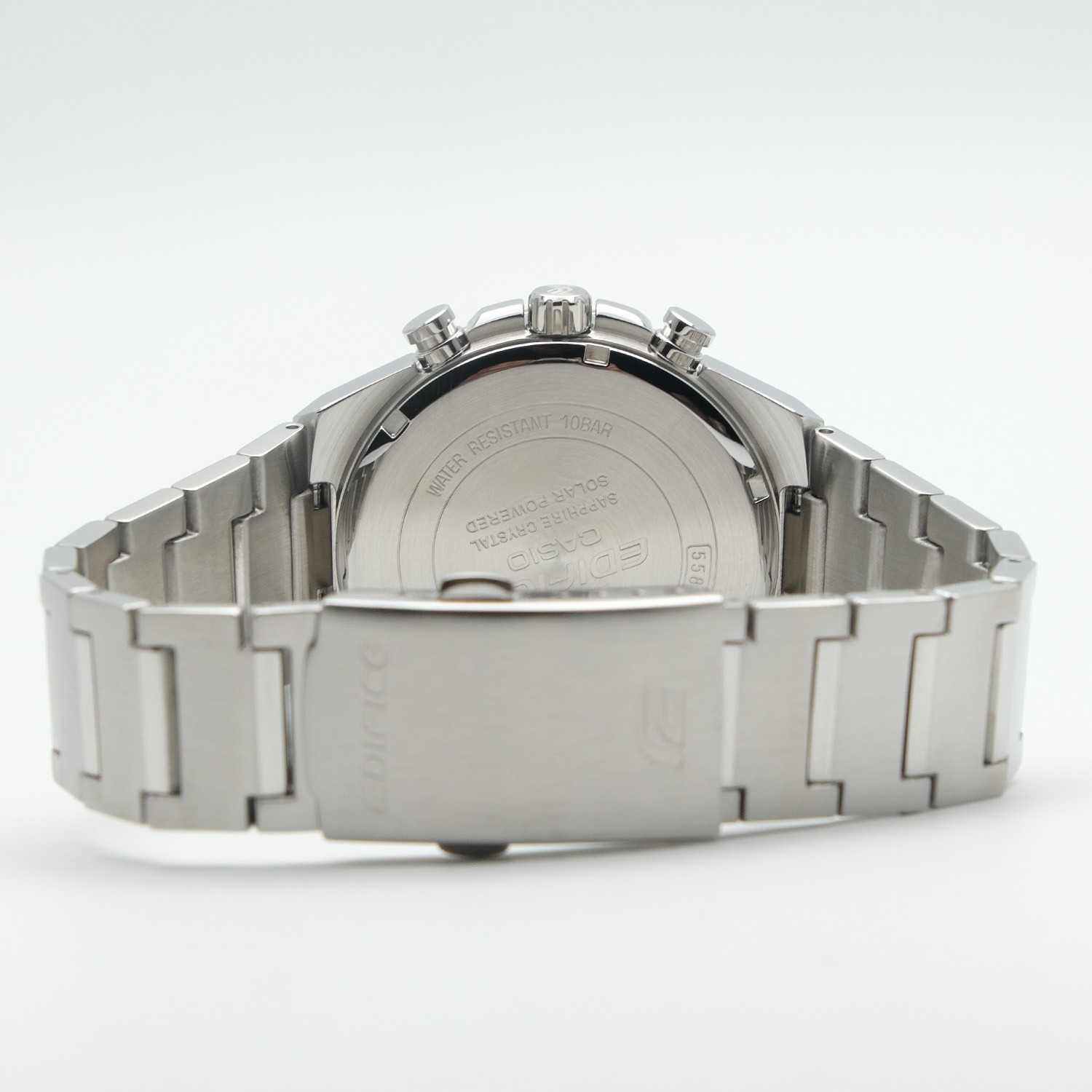 Мужские наручные часы-хронограф с секундомером. Питание от солнечной энергии, индикатор уровня зарядки батареи. Время работы аккумулятора без подзарядки приблизительно 5 месяцев. Необритовое светонакопительное покрытие обеспечивает длительное послесвечение в темноте даже после кратковременного нахождения на свету. Секундомер с точностью показаний 1 сек. и временем измерения 30 минут. 12-ти и 24-х часовой формат времени. Присутствует окошко даты. Заводная головка с защитой. Задняя крышка с винтовым фиксатором. Браслет с раскладывающейся застежкой. Вес часов 147 грамм. Гарантия 1 год.