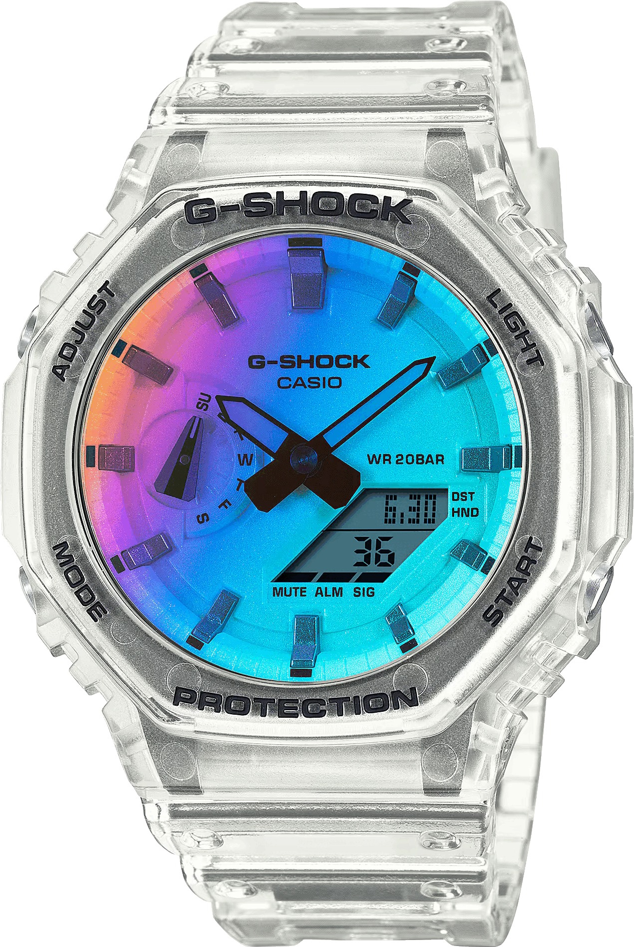 Мужские наручные часы Casio G-Shock ярким эффектным циферблатом. Серия часов со структурой Carbon Core Guard: модуль часов защищает легкий и сверх-прочный полиуретановый корпус с углеродным армированием 12-ти и 24-х часовой формат времени. Секундомер с точностью показаний 1/100 сек. и временем измерения 24 часа. SPLIT-хронограф. Таймер обратного отсчета от 1/1 мин. до 24 часов с автоповтором. Электролюминесцентная подсветка освещает весь циферблат. Функция парный иллюминатор обеспечивает подсветку не только аналогового циферблата, но и цифрового дисплея. Необритовое светонакопительное покрытие обеспечивает длительное послесвечение в темноте даже после кратковременного нахождения на свету. Мировое время. Функция перемещения стрелок. Функция отключения/включения звука. 5 будильников, ежечасный сигнал. Автоматический календарь (число, день недели, месяц) до 2099 года. Задняя крышка на 4-х винтах. Вес 51 грамм. Гарантия 1 год.