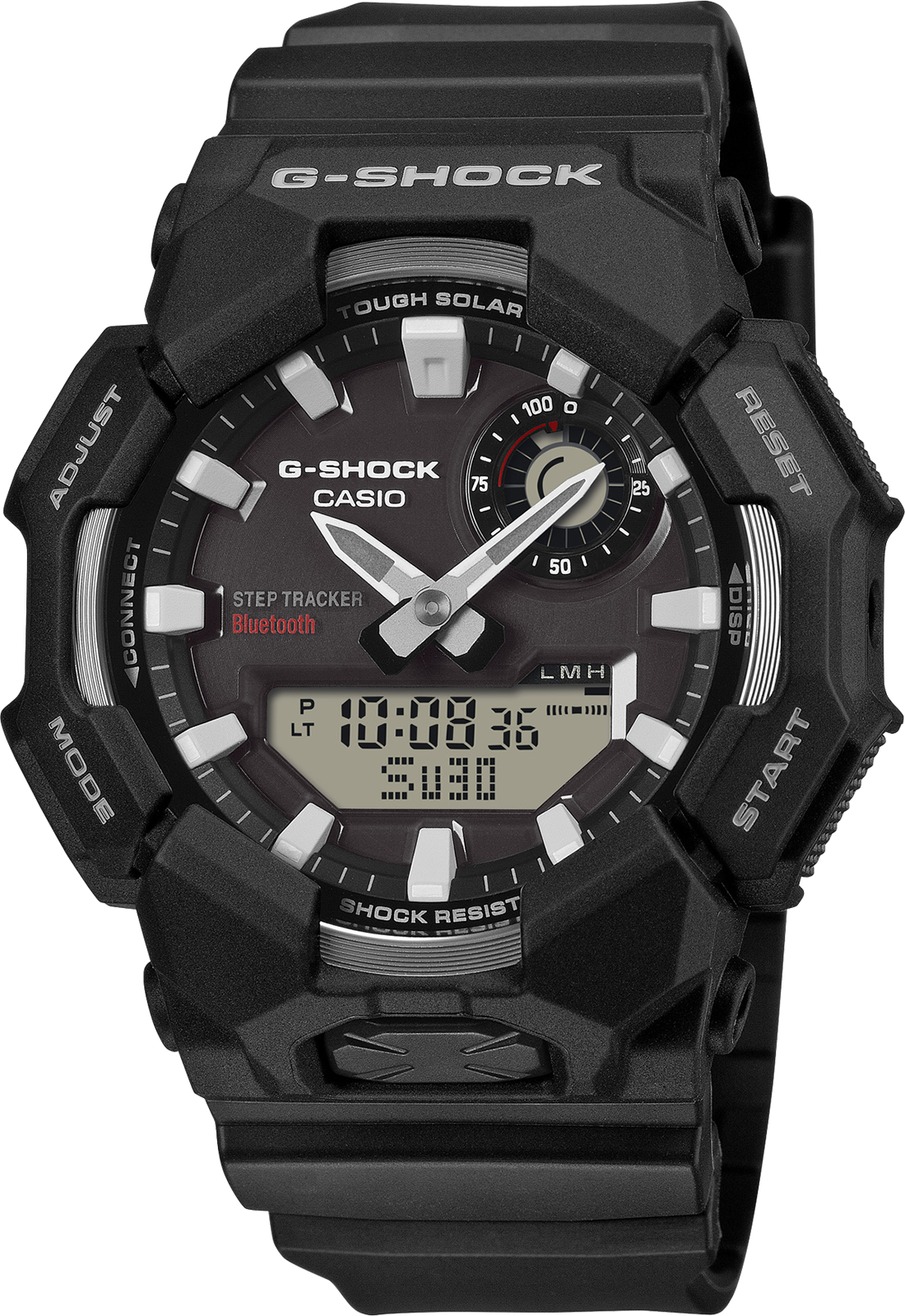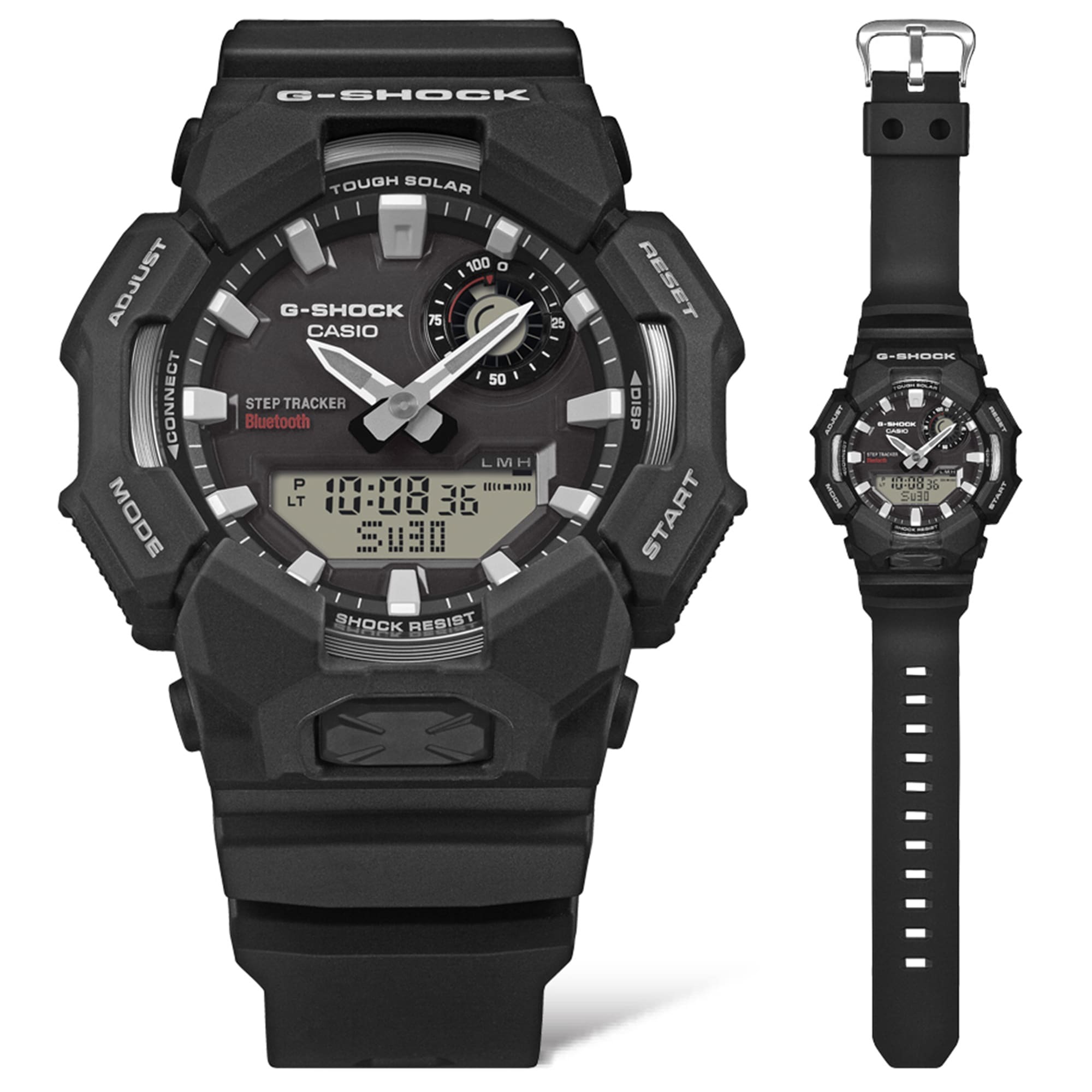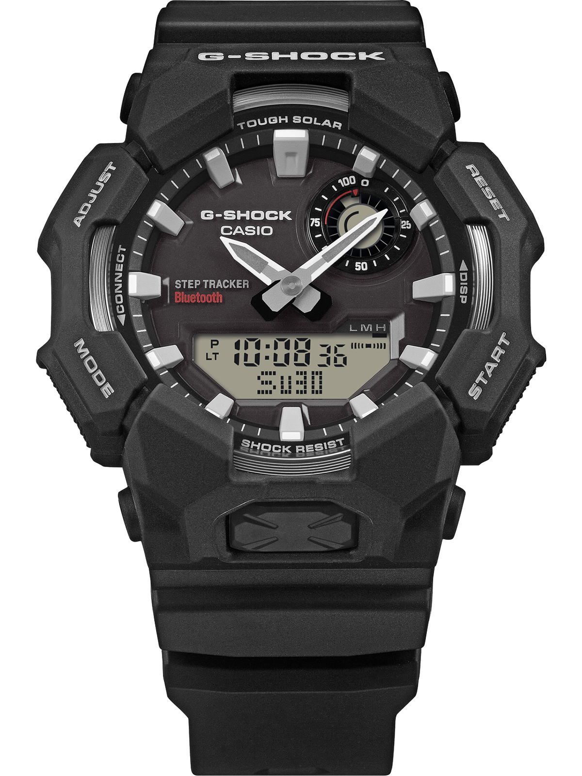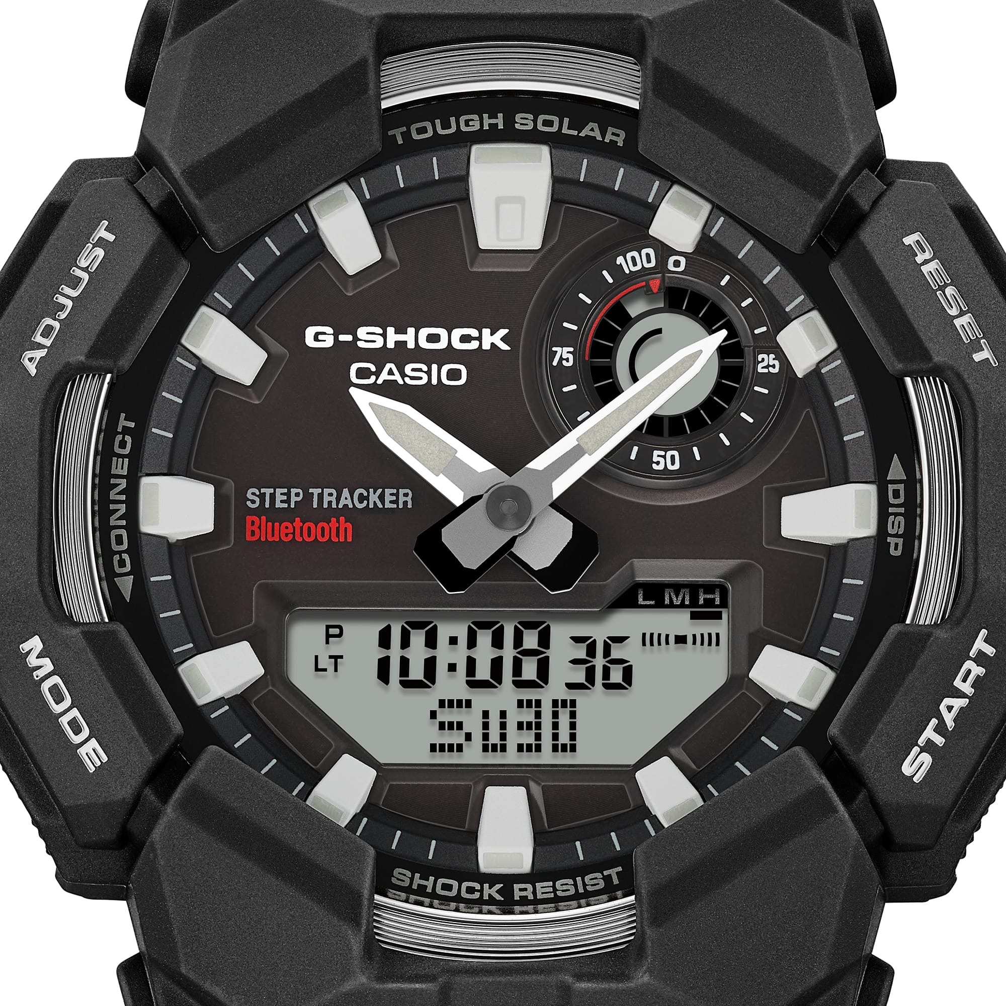 Мужские многофункциональные наручные часы Casio G-Shock с питанием от солнечной энергии, которые отслеживают ваши шаги и отображают их в цифровом виде. Большой корпус, эффектный циферблат и тщательная проработка деталей — включая безель с напылением, изысканную отделку циферблата в виде солнечных лучей и металлическую вставку на циферблате — каждый элемент говорит о приверженности Casio к прочности и стилю. Полностью работающие от солнечной энергии, эти часы отслеживают ваши шаги и отображают данные на цифровом экране. Подключитесь через Bluetooth® к приложению CASIO WATCHES для автоматической коррекции времени и легкого доступа к журналам активности. Практичные функции включают мировое время, секундомер и яркую светодиодную подсветку, управляемую кнопкой на передней панели. Фосфоресцирующие стрелки и индексы обеспечивают отличную видимость даже при слабом освещении. Дизайн с ремешком из биоразлагаемой смолы отражает прогрессивный подход к устойчивому развитию — снижение воздействия на окружающую среду без ущерба для прочности. Модель GA-B010 создана для того, чтобы соответствовать любым требованиям, от повседневного использования до профессиональной деятельности.