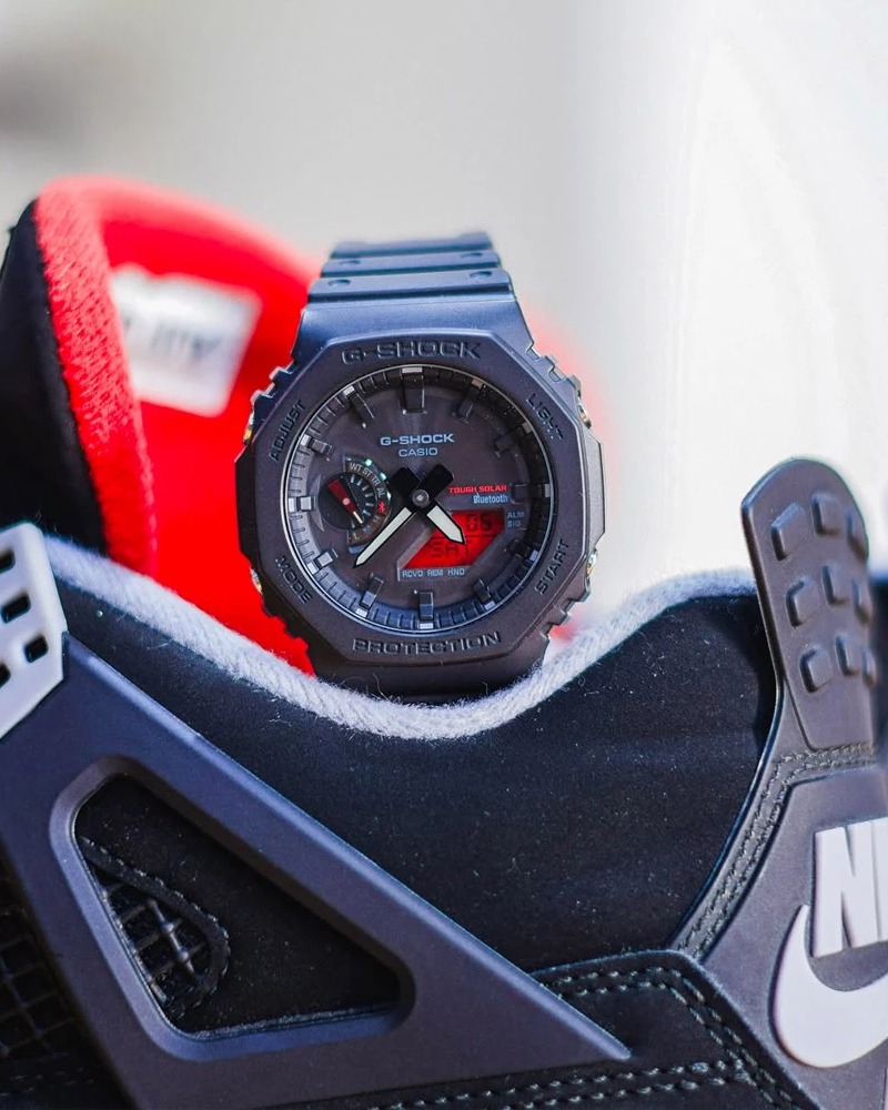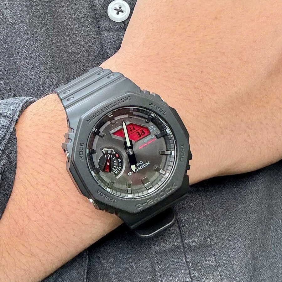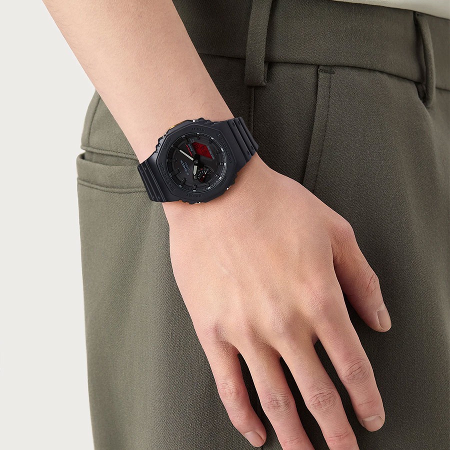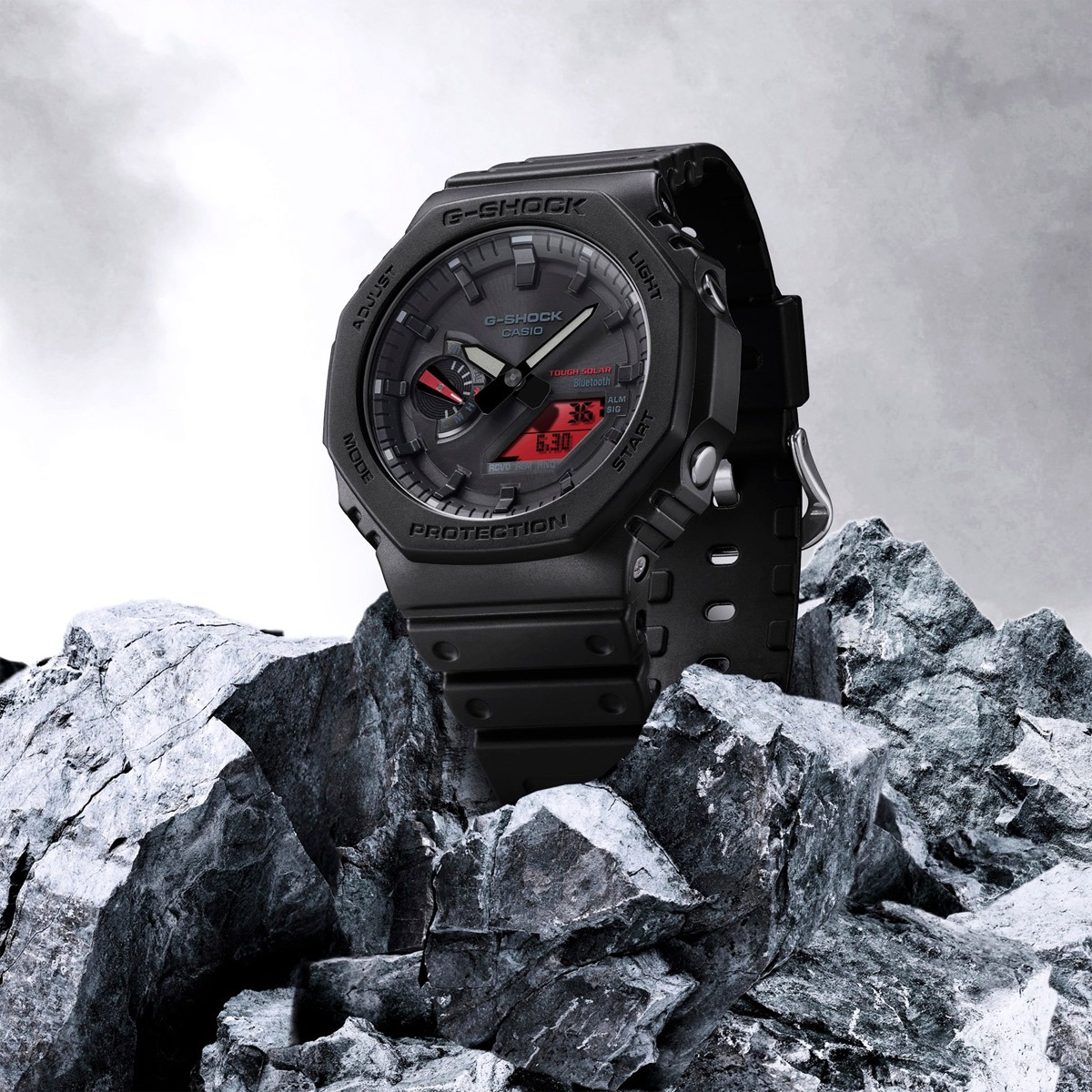 Мужские часы Casio G-Shock GA-B2100BBR-1A сочетают экологичность с передовыми технологиями. Корпус из биопластика, созданного из возобновляемых ресурсов, дополнен солнечной батареей Tough Solar с индикатором заряда. Автономность работы: до 7 месяцев без подзаряда и до 18 месяцев с функцией энергосбережения. Защиту обеспечивает легкий корпус Carbon Core Guard с карбоновыми волокнами, устойчивый к ударам и деформациям. Двойная подсветка (циферблат + ЖК-дисплей) с настраиваемой длительностью свечения (1.5 или 3 сек) и светонакопительное покрытие для видимости в темноте.