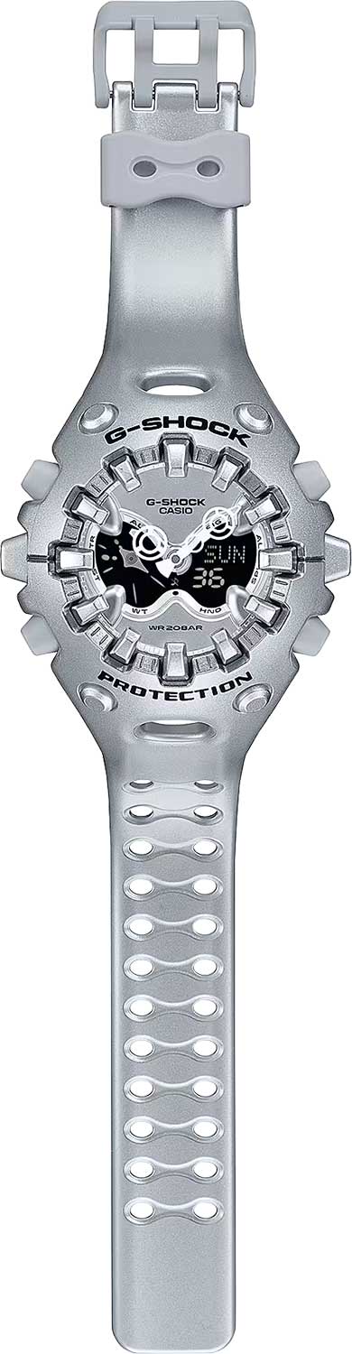 Представляем новые часы Casio GA-V01-8A из легендарной серии G-Shock с футуристичным дизайном. Модель оснащена инновационной системой Shock Release Hand, где стрелки крепятся при помощи магнитного поля для эффективного поглощения ударов. Ударопрочный корпус с 4-винтовой стальной задней крышкой надежно защищает механизм от вибраций и внешних воздействий.