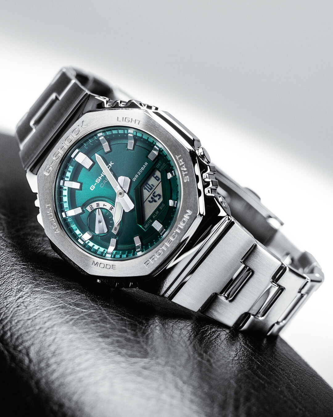Мужские наручные часы Casio G-Shock в стальном обличии. Противоударный корпус защищает механизм от ударов и вибрации. Двойная подcветка: циферблат и ЖК-дисплеи подсвечиваются светодиодом, благодаря наличию функции задержки, после отпускания кнопки освещение горит еще несколько секунд. Настраиваемое послесвечение 1,5 или 3сек. Цвет подсветки: белый. Необритовое светонакопительное покрытие обеспечивает длительное послесвечение в темноте даже после кратковременного нахождения на свету. 12-ти и 24-х часовой формат времени. Секундомер с двумя точностями показаний: 1/100 сек. (до 1 часа) и 1 сек. (после 1 часа) и временем измерения 24 часа, сплит-хронограф. Таймер обратного отсчета от 1 cек. до 24 часов. Мировое время – 48 городов (31 часовой пояс), всемирное координированное время (UTC). Функция включения/отключения летнего времени. Ретроградный указатель для недели. Функции отключения/включения звука и перемещения стрелок для беспрепятственного просмотра информации на цифровых дисплеях. Циферблат с метками в виде штрихов выполнен по технологии Sunray (солнечные лучи). Батарея рассчитана на 3 года. Стальная задняя крышка крепится на 4-х винтах. Браслет с тройной раскладывающейся застежкой, расстегиваемой одним касанием. Вес часов 146 грамм. Гарантия 1 год.