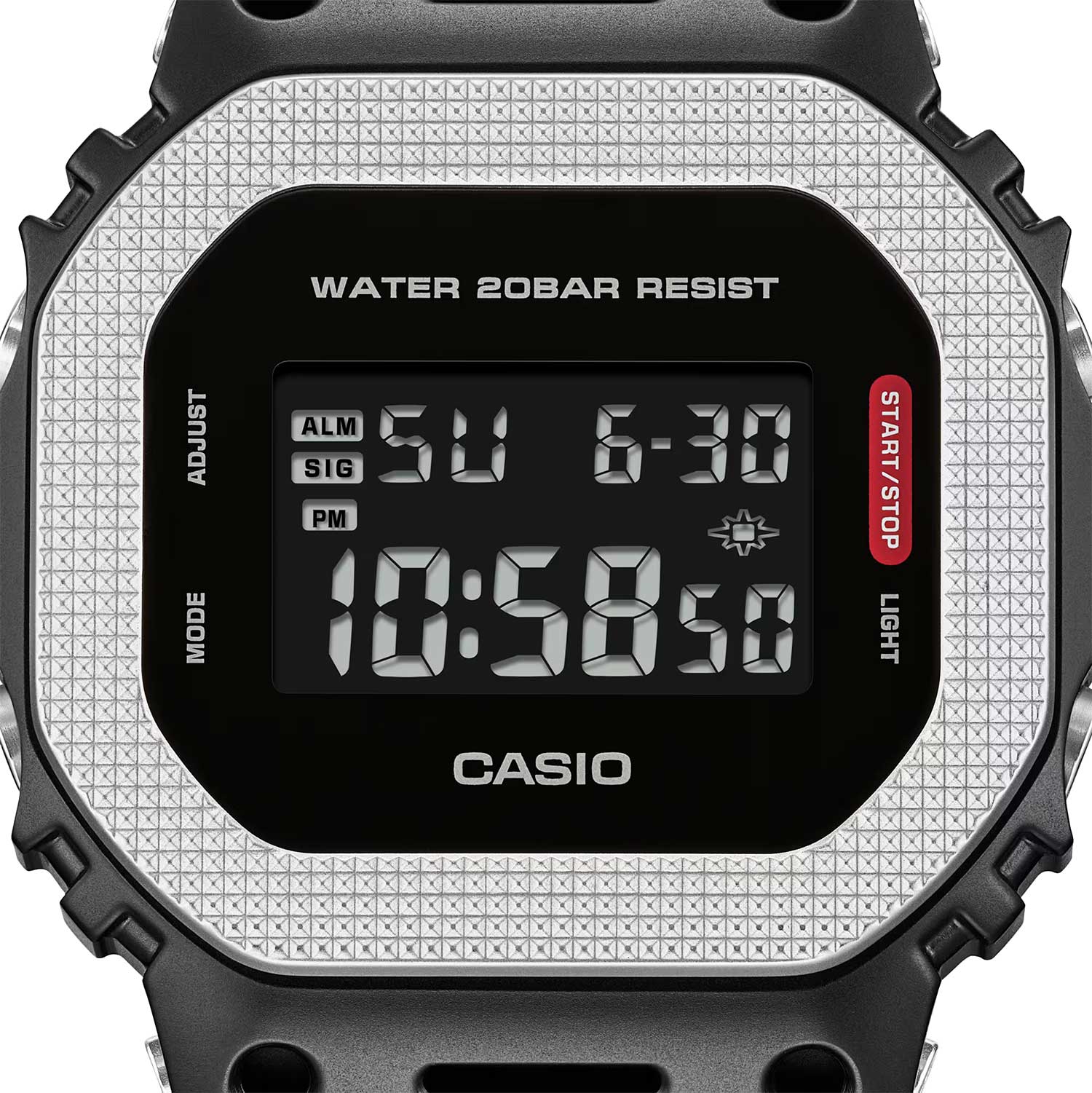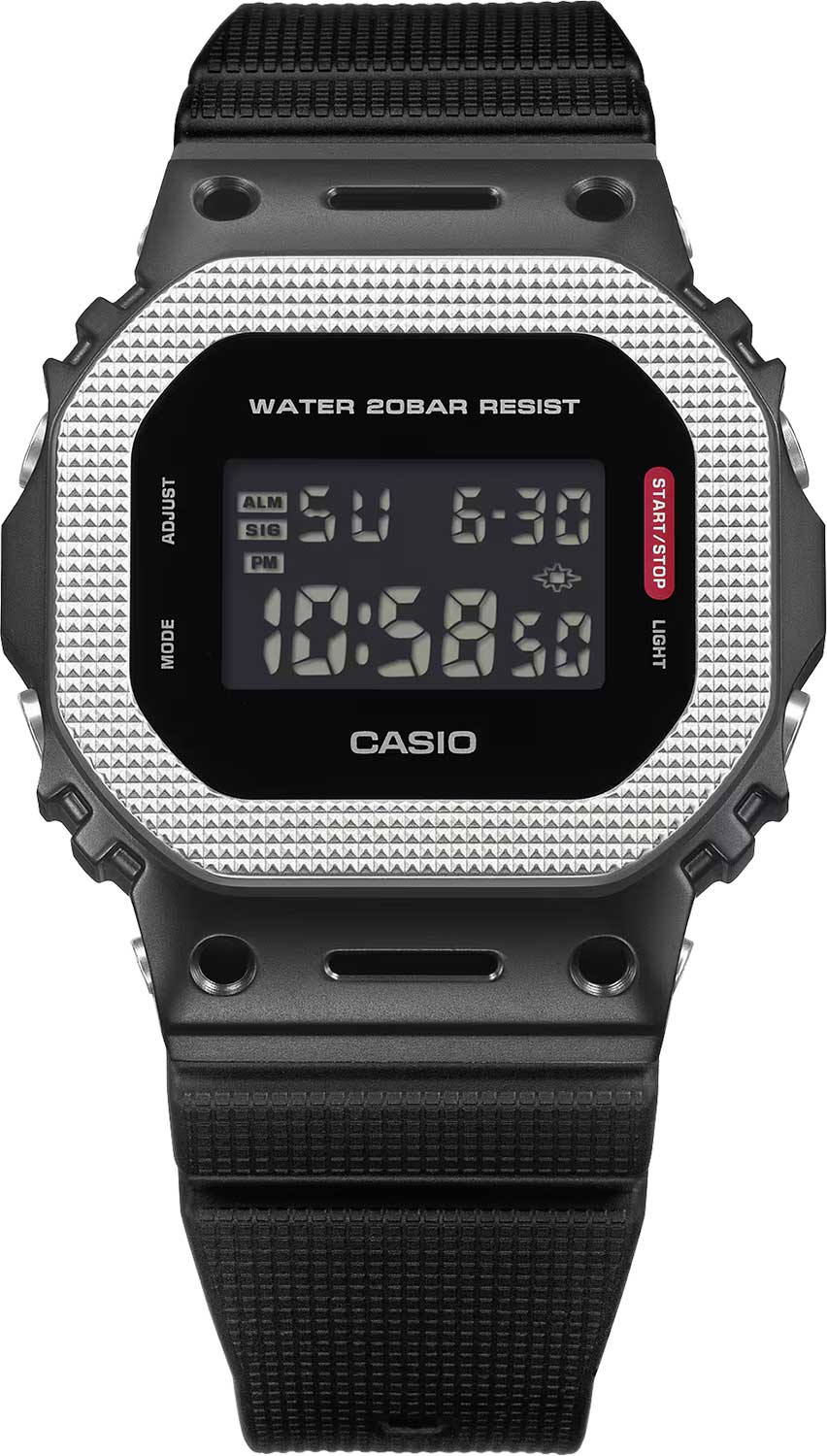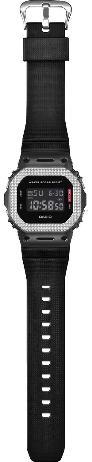 Мужски наручные часы G-Shock в прямоугольном корпусе. Модель выполнена в полимерном корпусе, поверх которого наложена стальная накладка. Электролюминесцентная подсветка обеспечивает равномерное освещение всего циферблата, облегчая считывание данных. В часах есть функция послесвечения - подсветка продолжает работать несколько секунд после того как кнопка подсветки была отпущена. Световая индикация сигнала, цвет подсветки: сине-зеленый. 12-ти и 24-х часовой формат времени. Секундомер с двумя точностями показаний: 1/100 сек. (до 1 часа) и 1 сек. (после 1 часа) и временем измерения 24 часа. Сплит-хронограф. Таймер обратного отсчета от 1 сек. до 24 часов с автоповтором. Типы сигналов: ежедневный, ежемесячный, каждый день определенного месяца, на определенную дату. Автоматический календарь (число, день недели, месяц) до 2039 года. Гарантия 1 год.
