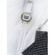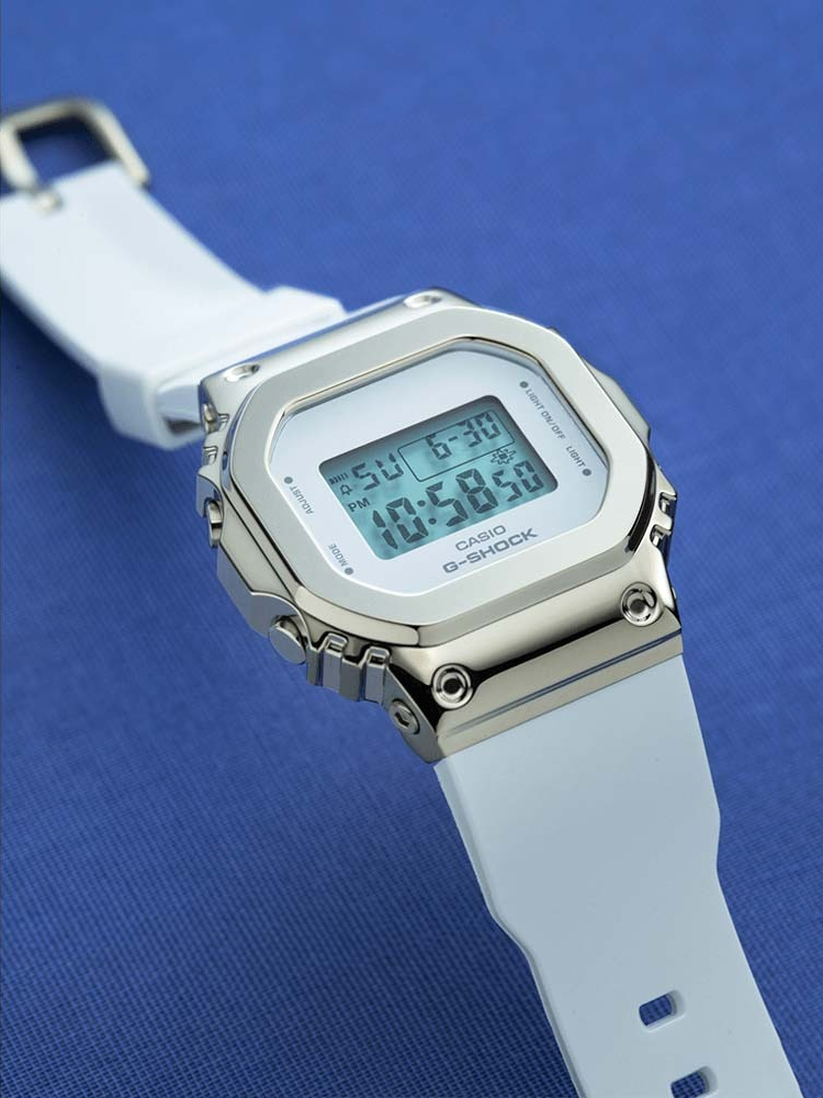 Женская модель G-Shock S-Series в полимерно-стальном корпусе с инверсионным дисплеем на белом ремешке. S-Series - серия унисексовых и женских наручных часов G-Shock, имеющих меньший размер корпуса, в отличие от остальных часов G-Shock. Противоударный корпус защищает механизм от ударов и вибрации. Электролюминесцентная подсветка освещает весь циферблат, после отпускания кнопки свечение продолжается еще некоторое время. В часах есть функция послесвечения - подсветка продолжает работать несколько секунд после того как кнопка подсветки была отпущена. Световая индикация сигнала. Цвет подсветки: сине-зеленый. 12-ти и 24-х часовой формат времени. Секундомер с двумя точностями показаний: 1/100с (до 1ч) и 1с (после 1ч) и временем измерения 24ч. SPLIT-хронограф. Таймер обратного отсчета от 1с до 24ч с автоповтором. Типы сигналов: ежедневный, ежемесячный, каждый день определенного месяца, на определенную дату. Ремешок из полимерного материала с классической застежкой. Вес 54 грамма. Гарантия 1 год.