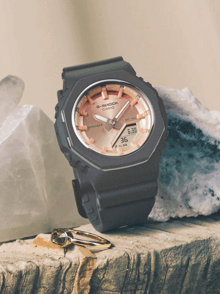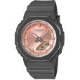 Стильные женские часы спортивные часы Casio G-Shock. Циферблат вдохновлен розовым кварцем, который символизирует красоту и здоровье. Корпус и ремешок выполнены из биопластика, который изготавливается из возобновляемых органических ресурсов. Противоударный корпус защищает механизм от ударов и вибрации. Двойная подcветка: циферблат и ЖК-дисплеи подсвечиваются светодиодом, благодаря наличию функции задержки, после отпускания кнопки освещение горит еще несколько секунд. Настраиваемое послесвечение 1,5 или 3сек. Необритовое светонакопительное покрытие обеспечивает длительное послесвечение в темноте даже после кратковременного нахождения на свету. 12-ти и 24-х часовой формат отображения времени. Секундомер с двумя точностями показаний: 1/100 сек. (до 1 часа) и 1 сек. (после 1 часа) и временем измерения 24 часа, сплит-хронограф. Таймер обратного отсчета от 1 секунды до 24 часов. Мировое время – 48 городов (31 часовой пояс), всемирное координированное время (UTC). Функции включения/отключения летнего времени, отключения/включения звука и перемещения стрелок для беспрепятственного просмотра информации на цифровом дисплее. Батарейка рассчитана на 3 года работы без замены. Стальная задняя крышка крепится на 4-х винтах. Ремешок с классической застежкой. Вес часов 37 грамм. Гарантия 1 год.