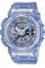 Модель GMA-S110 из женской серии S-Series в прозрачном корпусе. 12-ти и 24-х часовой формат времени. Циферблат подсвечивается светодиодом, функция автоподсветки освещает циферблат при повороте часов к лицу. Ударопрочная конструкция защищает механизм от ударов и вибрации. Секундомер с точностью показаний 1/1000 сек. и временем измерения 100 ч. Сплит-хронограф. Таймер обратного отсчета от 1 мин. до 24 ч. с автоповтором. Мировое время. 5 будильников, один с функцией Snooze (повтор сигнала). Ежечасный сигнал. Вес 56 грамма. Гарантия 1 год.