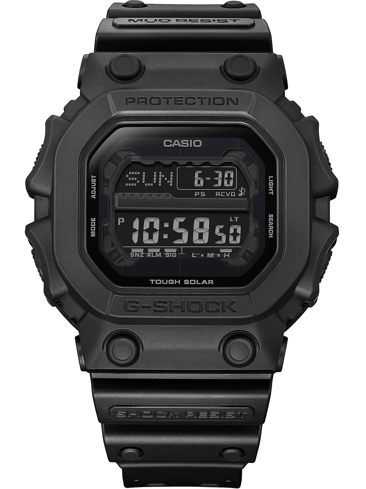 Мужские спортивные часы Casio G-Shock. Питание от солнечной энергии Tough Solar - солнечные батарейки большой мощности. Индикатор заряда батареи. Функция автоматического сохранения энергии (отключает LCD дисплей). Время работы аккумулятора без подзарядки - 13 месяцев, при включенной функции сохранения энергии - 27 месяцев. Противоударный корпус защищает механизм от ударов и вибрации, защита от попадания внутрь пыли и грязи. Циферблат подсвечивается ярким светодиодом. Функция послесвечения - подсветка продолжает работать несколько секунд после того как кнопка подсветки была отпущена, настраиваемое время 1,5 или 3 сек. Цвет подсветки: белый. 12-ти и 24-х часовой формат времени. Секундомер с точностью показаний 1/100 сек. и временем измерения 24 часа, сплит-хронограф. Таймер обратного отсчета времени от 1 мин. до 24 часов. Мировое время – 38 городов (31 часовой пояс), всемирное координированное время (UTC). Функции включения/отключения летнего времени и включения/отключения звука. Задняя крышка крепится на 4-х винтах. Ремешок с классической застежкой. Вес часов 88 грамм. Гарантия 1 год.