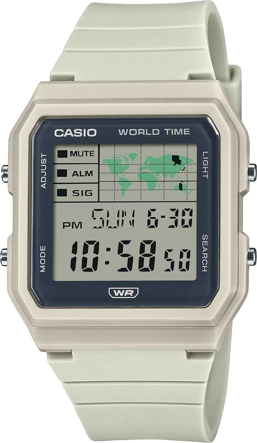 Стильные унисекс часы Casio с прямоугольным корпусом и цифровым дисплеем. 12-ти и 24-х часовой формат отображения времени. Секундомер с точностью показаний 1/100 сек. и временем измерения 24 часа, сплит-хронограф. Таймер обратного отсчета от 1 сек. до 24 часов. Мировое время – 48 городов (31 часовой пояс), всемирное координированное время (UTC). Функция включения/отключения летнего времени. Переключение между домашним и мировым временем. Режим «Мульти Тайм» - показания текущего времени в 4-х зафиксированных городах. Функция включения/отключения звука. Батарея рассчитана на 3 года. Стальная задняя крышка с креплением к корпусу на винтах. Ремешок выполнен из биопластика, который изготавливается из возобновляемых органических ресурсов, дополнен классической застежкой. Вес часов 23 грамма. Гарантия 1 год.