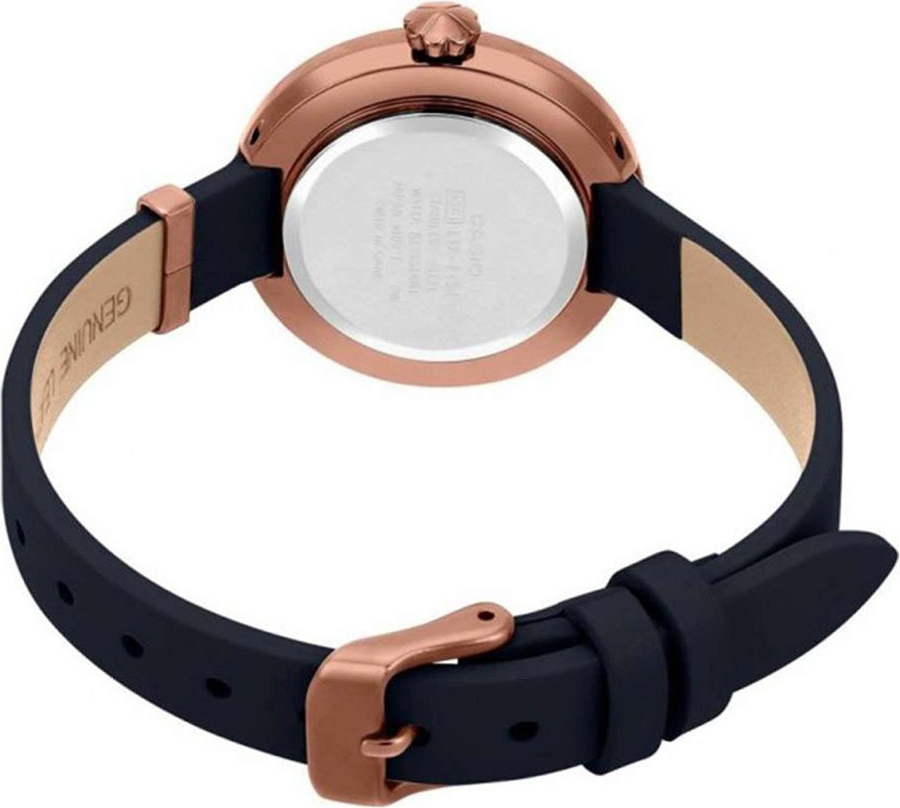 Элегантные женские часы Casio с круглым корпусом. Питание от батарейки SR626SW с приблизительным сроком службы 3 года. Ремешок с классической застежкой. Гарантия 1 год.