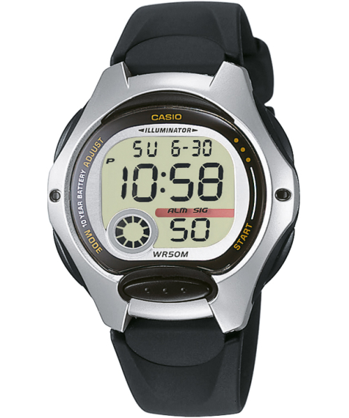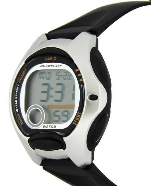 Спортивная модель женских наручных часов Casio. 12-ти и 24-х часовой формат времени. Секундомер с точностью измерения 1/100 сек., запас измерения 24 часа. Для освещения циферблата используется светодиод. Функция задержки отключения - подсветка горит еще несколько секунд после отпускания кнопки освещения. Ежечасный сигнал (функция ежечасного сигнала обеспечивает подачу часами звукового сигнала при наступлении каждого нового часа). Полностью автоматический календарь, учитываются месяцы разной продолжительности и високосные годы. Циферблат закрывает стекло ударопрочной выпуклой формы из полимерного материала. Задняя крышка из нержавеющей стали с креплением к корпусу на винтах. Ремешок из полимерного материала с классической застежкой. Вес всего 20 грамм. Гарантия 1 год.