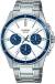 Практичные мужские часы с дополнительным отображением на малых циферблатах даты, дня недели и текущего времени в 24-х часовом формате. Питание от батарейки SR927SW, рассчитанной на 3 года работы без замены. Заводная головка с защитой. Браслет с раскладывающейся застежкой, обхват запястья от 150 до 205 мм. Вес часов 124 грамма. Гарантия 1 год.