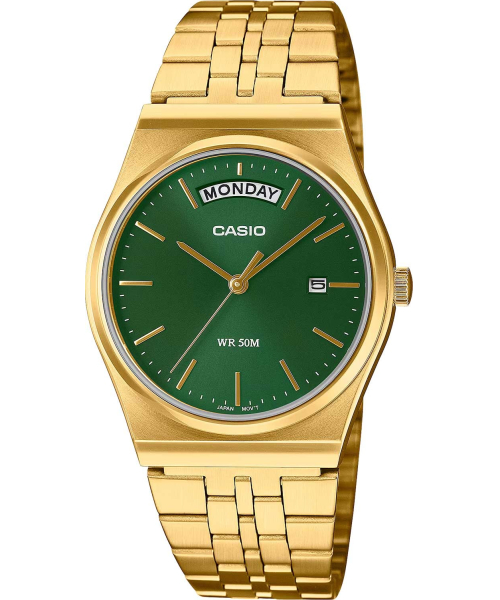 Стильные мужские часы Casio с круглым корпусом. Присутствуют окошки даты и дня недели. Питание от батарейки SR920SW, рассчитанной на 3 года работы без замены. Браслет с тройной раскладывающейся застежкой, расстегиваемой одним касанием, обхват запястья от 150 до 205 мм. Вес часов 85 грамм. Гарантия 1 год.