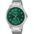 Мужские наручные часы Casio с указателем фазы луны. Питание от батарейки типа SR621SW, рассчитанной на 3 года работы без замены. Заводная головка с защитой. Завинчивающаяся задняя крышка. Браслет с раскладывающейся застежкой, обхват запястья от 150 до 205 мм. Вес часов 113 грамм. Гарантия 1 год.