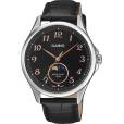 Мужские наручные часы Casio с указателем фазы луны. Питание от батарейки типа SR621SW, рассчитанной на 3 года работы без замены. Заводная головка с защитой. Завинчивающаяся задняя крышка. Ремешок с классической застежкой, обхват запястья от 175 до 215 мм. Вес часов 58 грамм. Гарантия 1 год.