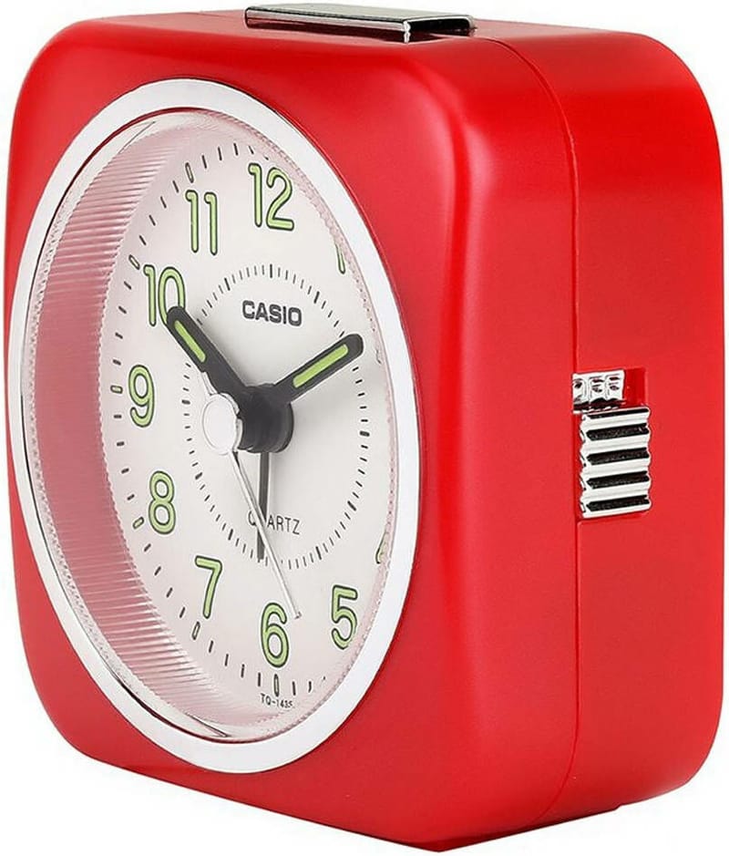Casio TQ-143S-4 - компактный настольный будильник с кварцевым механизмом, сочетающий в себе классический аналоговый дизайн и японскую практичность.