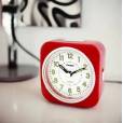 Модель выполнена в квадратном корпусе из лёгкого и прочного полимерного пластика насыщенного красного цвета. Белый циферблат с контрастными арабскими цифрами обеспечивает отличную читаемость. Для комфортного использования в тёмное время суток предусмотрена функция подсветки (активируется верхней кнопкой), а также специальное светонакопительное покрытие (необрит) на стрелках и часовых метках.