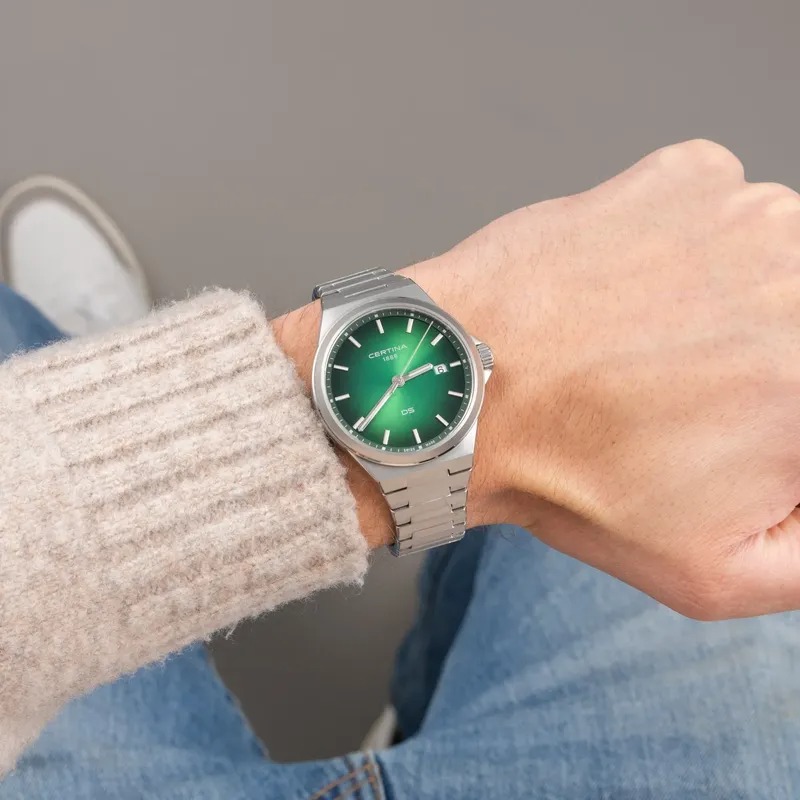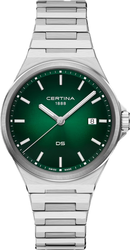 Элегантные швейцарские часы Certina C043.410.11.091.00 из коллекции DS-7 станут идеальным выбором для ценителей современного спортивного стиля. Корпус диаметром 39 мм плавно переходит в интегрированный стальной браслет, создавая гармоничный и узнаваемый силуэт в эстетике 70-х годов. Глубокий зеленый циферблат с эффектом солнечных лучей придает модели благородный вид и меняет свой оттенок в зависимости от освещения. За точность хода отвечает надежный кварцевый механизм ETA F06.412 с технологией Precidrive, сертифицированный COSC как хронометр, что гарантирует минимальную погрешность времени. Фирменная концепция Double Security обеспечивает повышенную ударопрочность и водонепроницаемость до 100 метров, позволяя не снимать часы во время плавания. Сапфировое стекло с антибликовым покрытием надежно защищает циферблат от царапин, а люминесцентное покрытие Super-LumiNova на стрелках и метках обеспечивает отличную читаемость в темноте. Эти часы сочетают в себе премиальное качество материалов и универсальный дизайн, уместный как в деловой обстановке, так и в повседневной жизни. Гарантия 2 года.