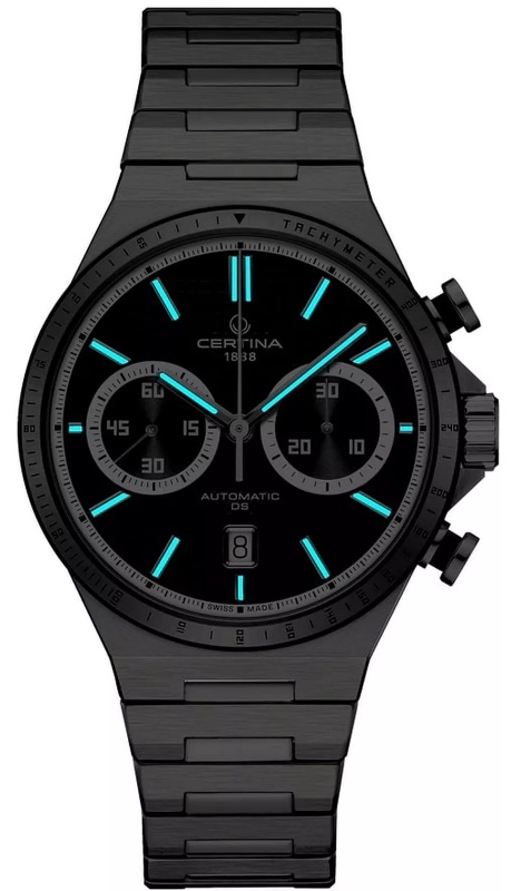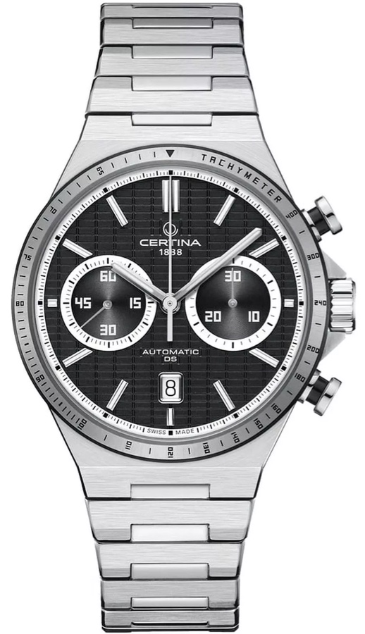 Швейцарские мужские часы Certina C043.427.21.051.00 из коллекции DS-7 Chrono Auto представляют собой механический хронограф в современном спортивном стиле. Корпус диаметром 42 мм и интегрированный браслет выполнены из гипоаллергенной нержавеющей стали 316L с частичным черным PVD-покрытием на центральных звеньях и безеле, что придает модели динамичный двухцветный дизайн. Черный циферблат с контрастными серебристыми метками и стрелками, покрытыми люминесцентным составом Super-LumiNova, обеспечивает отличную читаемость в темноте. Внутри работает автоматический калибр Valjoux A05.231 с запасом хода до 68 часов и антимагнитной пружиной Nivachron, работу которого можно наблюдать через прозрачную заднюю крышку. Часы оснащены тахиметрической шкалой для измерения скорости и функцией хронографа с дополнительными счетчиками. Фирменная система защиты Double Security гарантирует водонепроницаемость до 100 метров и устойчивость к ударам, а сапфировое стекло с двусторонним антибликовым покрытием надежно защищает циферблат от царапин. Гарантия 2 года.