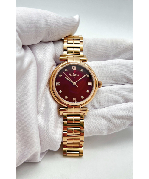 Элегантные женские часы Русское время с перламутровым циферблатом, украшенным кристаллами. Завинчивающаяся задняя крышка. Длина браслета 20 см. Гарантия 2 года.