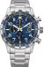 Мужские наручные часы-хронограф с секундомером. Система Eco-Drive не требующая замены батарейки. Питание от солнечной энергии, запас энергии на 210 дней. Функция индикации заряда (EOL) и предотвращения перезарядки. Секундомер до 1 часа с точностью 1/5 сек. Дополнительно на малом циферблате отображается текущее время в 24-х часовом формате. Присутствует окошко даты. Завинчивающаяся задняя крышка. Браслет с раскладывающейся застежкой. Вес часов 153 грамма. Гарантия 1 год.