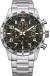 Мужские наручные часы-хронограф с секундомером. Система Eco-Drive не требующая замены батарейки. Питание от солнечной энергии, запас энергии на 210 дней. Функция индикации заряда (EOL) и предотвращения перезарядки. Секундомер до 1 часа с точностью 1/5 сек. Дополнительно на малом циферблате отображается текущее время в 24-х часовом формате. Присутствует окошко даты. Завинчивающаяся задняя крышка. Браслет с раскладывающейся застежкой. Вес часов 153 грамма. Гарантия 1 год.