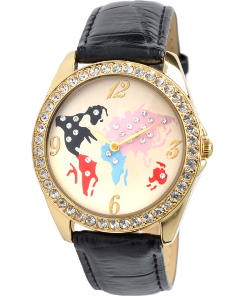 Женские кварцевые наручные часы в круглом корпусе, украшенном кристаллами. Циферблат с изображением карты мира украшен кристаллами. Завинчивающаяся задняя крышка из нержавеющей стали. Заводная головка с защитой. Точность хода обеспечивает японский кварцевый механизм. Ремешок из экокожи с классической застежкой. Гарантия 6 месяцев.
