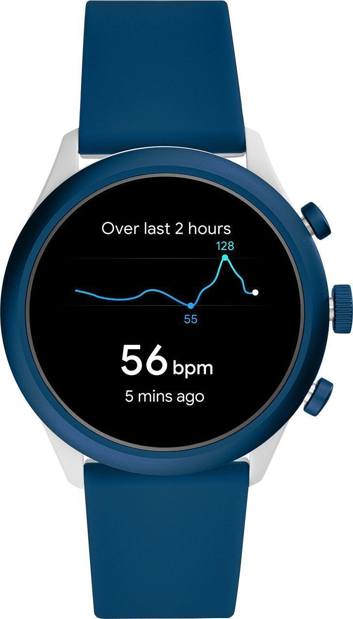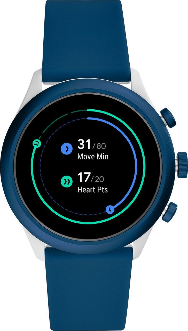 Смарт-часы на базе четырехъядерного процессора Qualcomm® Snapdragon™ Wear 3100. Операционная система Wear OS от Google. Объем встроенной памяти 4Гб. Объём оперативной памяти 512 Мб. Беспроводная синхронизация со смартфоном на базе Android 6.0+ (за исключением Go edition) либо iOS 10.0+ через Bluetooth 4,1 или Wi-Fi 802.11 b/g/n. Встроенные сенсоры: гироскоп, альтиметр, акселерометр, датчик частоты сердечных сокращений и микрофон. Технология вибрационного/тактильного отклика. При подключении часов к смартфону вы сможете получать уведомления с электронной почты, социальных сетей и других приложений на экран часов. Отслеживание активности: счетчик шагов, количество сожженных калорий. Секундомер. Создание и отслеживание индивидуальных целей. Спутниковая система навигации GPS, отслеживание пройденного расстояния без телефона. Технология Swimproof позволяет принимать душ, плавать и нырять в бассейне. Встроенная система бесконтактной оплаты NFC (Google Pay). Голосовой помощник Google Assistant. Автоматическая настройка времени и даты при смене часового пояса. Мировое время. Второй часовой пояс. Таймер. Встроенная система напоминаний (вибрация). Настраиваемый экран, кнопки. Цветной AMOLED-дисплей 1.19'', разрешением 390x390 пикселей. Закаленное стекло, разработанное специально для сенсорных дисплеев. Хранение и воспроизведение музыки. Отображение погоды. Быстрая зарядка (80% за 60 минут). Перезаряжаемый аккумулятор. Индикатор заряда аккумулятора. Время работы аккумулятора до 24 ч. В комплекте USB-кабель для зарядки с магнитным креплением. Ремешок с возможностью быстрой замены. Гарантия 2 года.