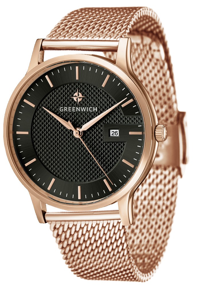 Мужские наручные часы Greenwich Breeze с круглым корпусом и изящным браслетом миланского плетения. Присутствует окошко даты. Точность хода обеспечивает японский кварцевый механизм Miyota. Гарантия 2 года.