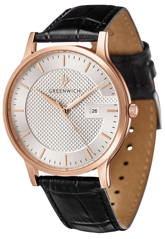 Мужские наручные часы Greenwich Breeze с круглым корпусом и кожаным ремешком. Присутствует окошко даты. Точность хода обеспечивает японский кварцевый механизм Miyota. Ремешок с классической застежкой. Гарантия 2 года.