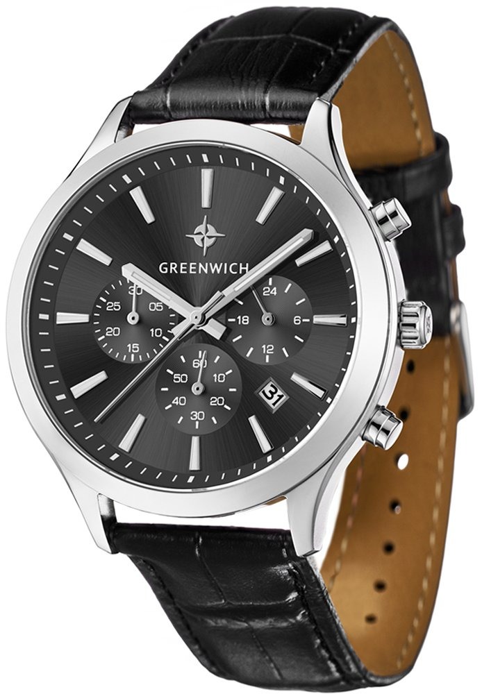 Мужские наручные часы-хронограф Greenwich Skipper с секундомером. Присутствует окошко даты. Дополнительно на малом циферблате отображается текущее время в 24-х часовом формате. На часовую, минутную стрелки и индексы нанесено люминесцентное покрытие, что позволяет определять время в темноте. Точность хода обеспечивает японский кварцевый механизм Miyota. Водонепроницаемость часов – 10 АТМ, что позволяет заниматься в них водными видами спорта. Завинчивающаяся задняя крышка украшена изображениями «розы ветров» и корабля, который является символом марки Greenwich. Ремешок из натуральной кожи с классической застежкой. Гарантия 2 года.