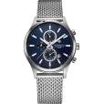 Хронограф из серии Navigator с надежным кварцевым механизмом станет вашим верным спутником в любых путешествиях. Корпус диаметром 43 мм выполнен из нержавеющей стали — прочного и гипоаллергенного материала, идеально подходящего для ежедневного ношения. На изящном серебристом циферблате расположены счетчики минут и секунд, 24-часовой индикатор и оригинальное окно даты. Благодаря люминесцентному покрытию стрелок и меток время легко считывается даже в темноте. Точность хода обеспечивает японский кварцевый механизм Miyota. Водонепроницаемость до 10 атмосфер защищает часы от влаги во время дождя или плавания. Модель дополнена стальным браслетом, выполненным в технике миланского плетения. Гарантия 2 года.
