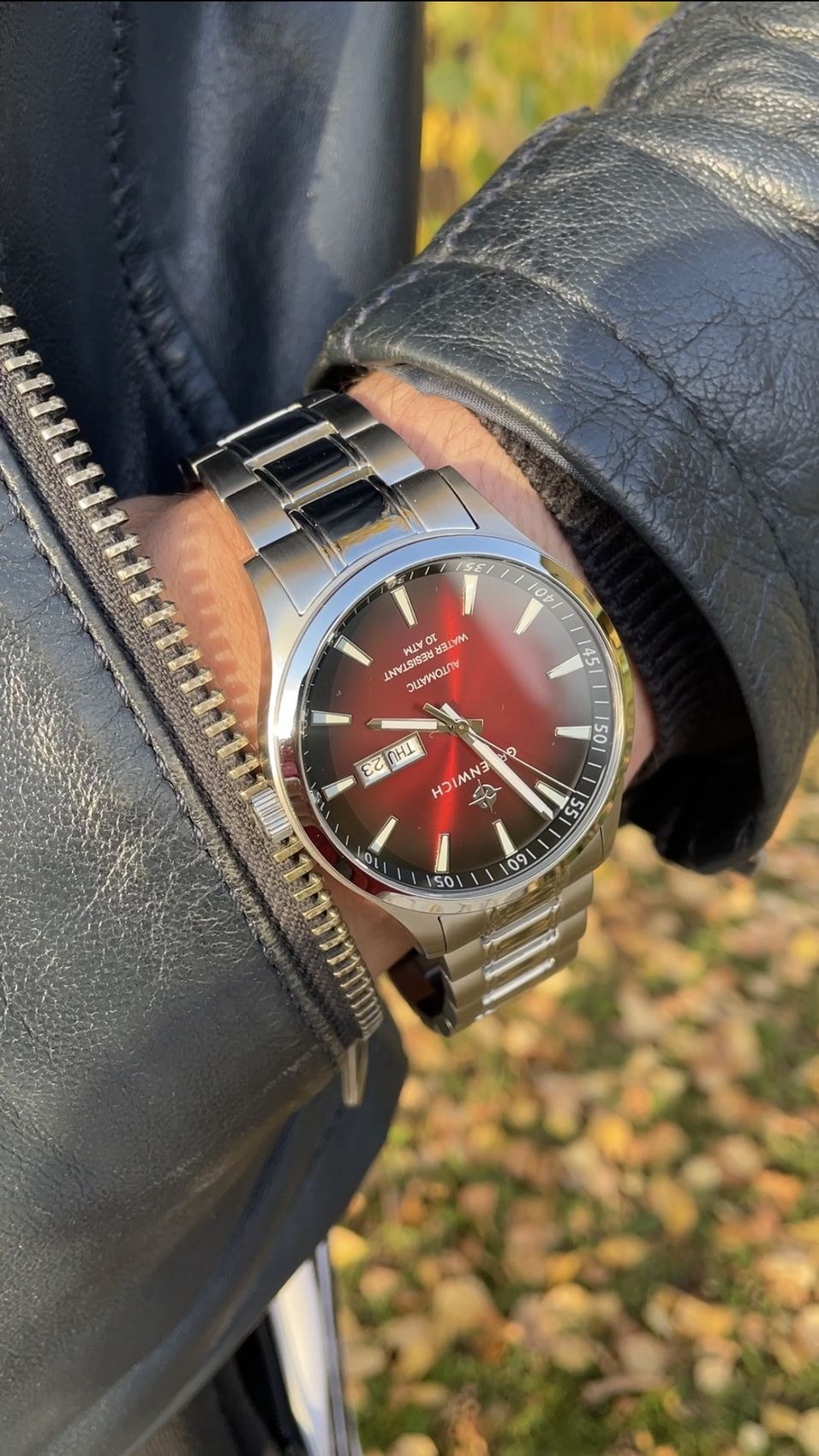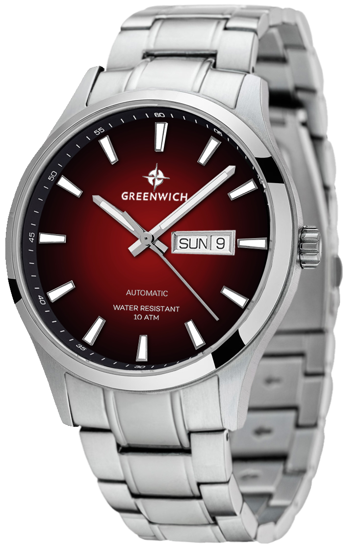 Элегантность, классика и верность традициям — основные черты дизайна часов Good Luck. Нержавеющая сталь корпуса сочетает два типа отделки — зеркальную полировку по безелю и матирование по бокам, создавая гармоничный контраст. Сквозь прозрачную заднюю крышку можно наблюдать работу автоматического механизма TMI с ротором, украшенным гравировкой парусника — символом английских мореходов — и названием серии. Черный циферблат с мягким градиентом и полированной поверхностью оформлен накладными рисками и крупными стрелками с люминесцентным покрытием, обеспечивающим отличную читаемость при любом освещении. Минеральное стекло надежно защищает циферблат, а водонепроницаемость до 10 атмосфер позволяет не беспокоиться о контакте с водой. Модель дополнена стальным браслетом с удобной застежкой-клипсой, оснащённой боковыми кнопками для комфортного использования. Автоматические часы Greenwich созданы для ежедневного ношения: они сочетают стиль, практичность и надежность, а их универсальный дизайн гармонично впишется в любой образ. Гарантия 2 года.