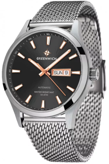 Миланский браслет из нержавеющей стали оснащен удобной регулируемой застежкой, которую можно легко подогнать под размер запястья. Автоматические часы Greenwich созданы для ежедневного ношения: они сочетают стиль, практичность и надежность, а их универсальный дизайн гармонично впишется в любой образ. Гарантия 2 года.