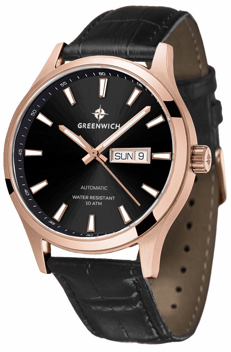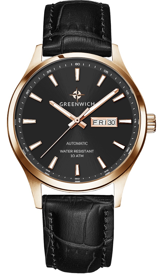 Элегантность, классика и верность традициям — основные черты дизайна часов Good Luck. Нержавеющая сталь корпуса сочетает два типа отделки — зеркальную полировку по безелю и матирование по бокам, создавая гармоничный контраст. Сквозь прозрачную заднюю крышку можно наблюдать работу автоматического механизма TMI с ротором, украшенным гравировкой парусника — символом английских мореходов — и названием серии. Черный циферблат с мягким градиентом и полированной поверхностью оформлен накладными рисками и крупными стрелками с люминесцентным покрытием, обеспечивающим отличную читаемость при любом освещении. Минеральное стекло надежно защищает циферблат, а водонепроницаемость до 10 атмосфер позволяет не беспокоиться о контакте с водой. Модель дополнена ремешком из натуральной кожи с классической застежкой. Автоматические часы Greenwich созданы для ежедневного ношения: они сочетают стиль, практичность и надежность, а их универсальный дизайн гармонично впишется в любой образ. Гарантия 2 года.