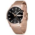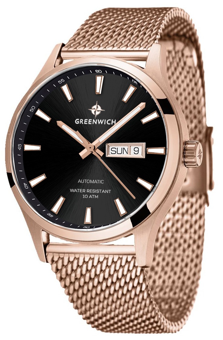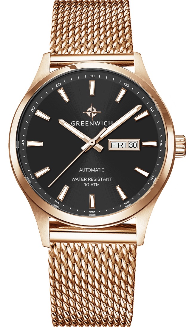 Элегантность, классика и верность традициям — основные черты дизайна часов Good Luck. Нержавеющая сталь корпуса сочетает два типа отделки — зеркальную полировку по безелю и матирование по бокам, создавая гармоничный контраст. Сквозь прозрачную заднюю крышку можно наблюдать работу автоматического механизма TMI с ротором, украшенным гравировкой парусника — символом английских мореходов — и названием серии. Черный циферблат с мягким градиентом и полированной поверхностью оформлен накладными рисками и крупными стрелками с люминесцентным покрытием, обеспечивающим отличную читаемость при любом освещении. Минеральное стекло надежно защищает циферблат, а водонепроницаемость до 10 атмосфер позволяет не беспокоиться о контакте с водой. Миланский браслет из нержавеющей стали оснащен удобной регулируемой застежкой, которую можно легко подогнать под размер запястья. Автоматические часы Greenwich созданы для ежедневного ношения: они сочетают стиль, практичность и надежность, а их универсальный дизайн гармонично впишется в любой образ. Гарантия 2 года.