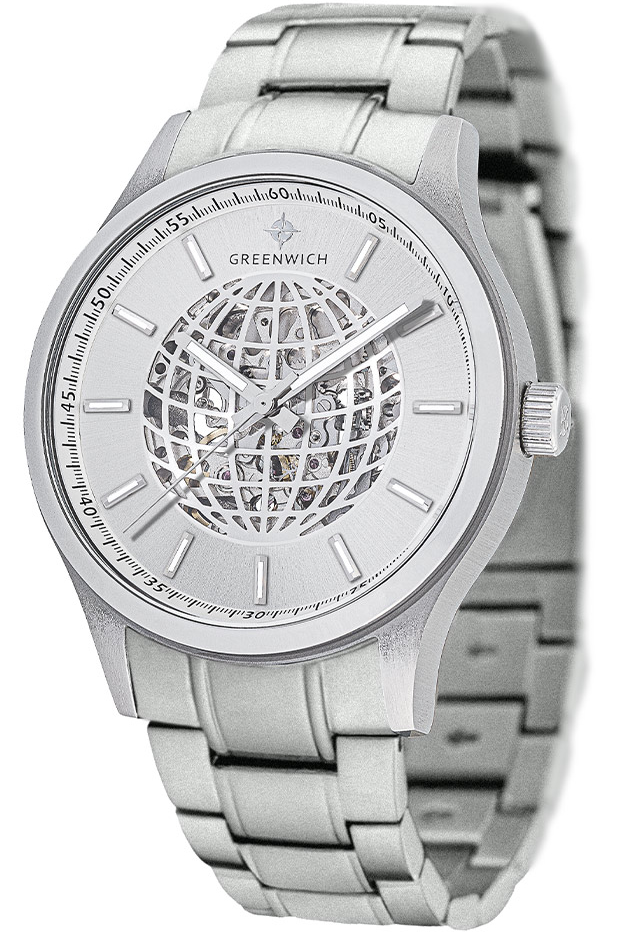 Greenwich Globe — элегантные мужские наручные часы, которые станут настоящим украшением вашего образа. Модель относится к серии Globe и представляет собой изысканное сочетание классического дизайна и современных технологий.
