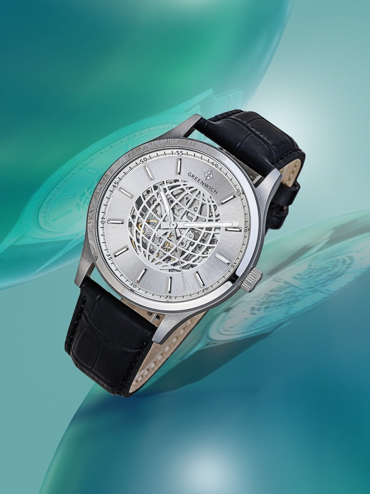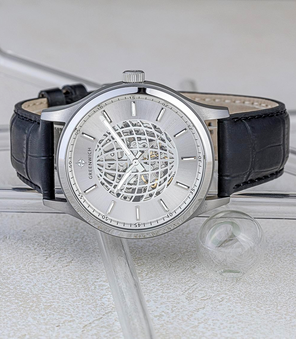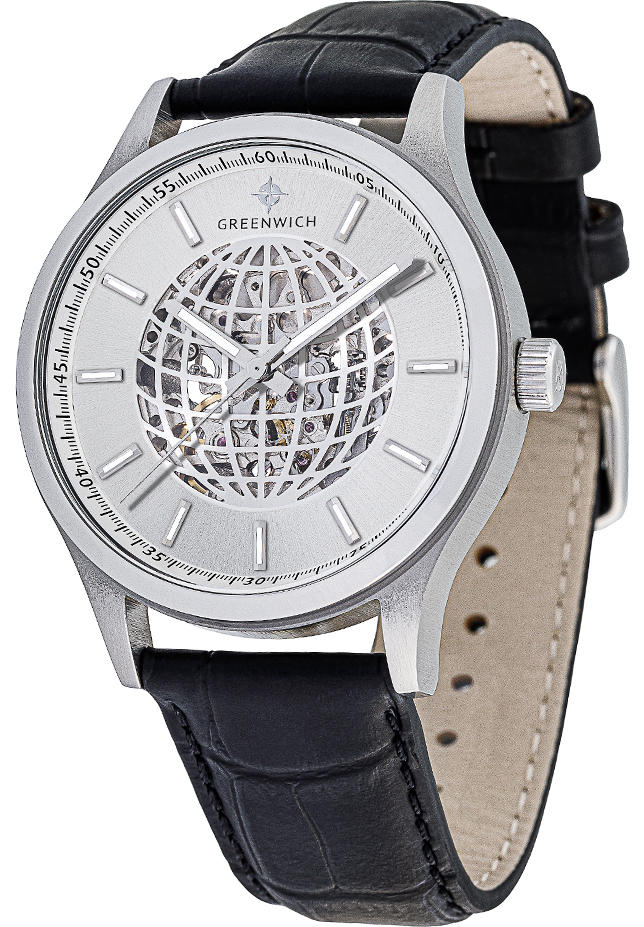 Greenwich Globe — элегантные мужские наручные часы, которые станут настоящим украшением вашего образа. Модель относится к серии Globe и представляет собой изысканное сочетание классического дизайна и современных технологий.